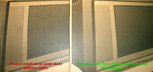 Our material is the best material, even though it’s softer than the solid plate but the objective is the ink transfer very good. It can be avoid the white dot during printing process especially for full printing. Besides, if the designs have the reverse printing or small wording, we can use our capping technique which is a harder liquid polymer on the current polymer. This will let the printer operator easier to print when the design is solid printing with small wording or reverse printing at the same time, so that it won’t reduce the productivity of the printer. Our printing plate still have an advantage which is it’s also can let the toning printing to be printed more evenness. It can reduce the corrugated board line to be appeared during the toning printing. |